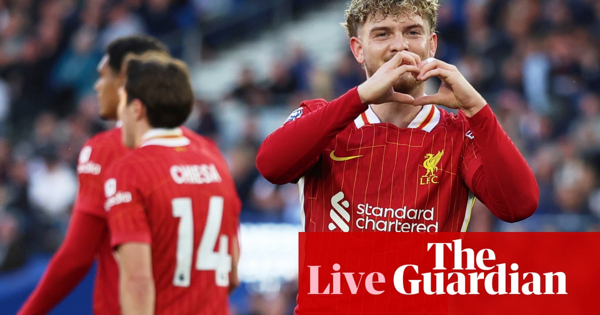 1 min: Liverpool are nearly ahead after 52 seconds! Gakpo finds some space on the left, drives inside and dodging a clumsy Wieffer tackle on the edge of Brighton’s area, and curls a low shot just wide of Verbruggen’s left-hand post!