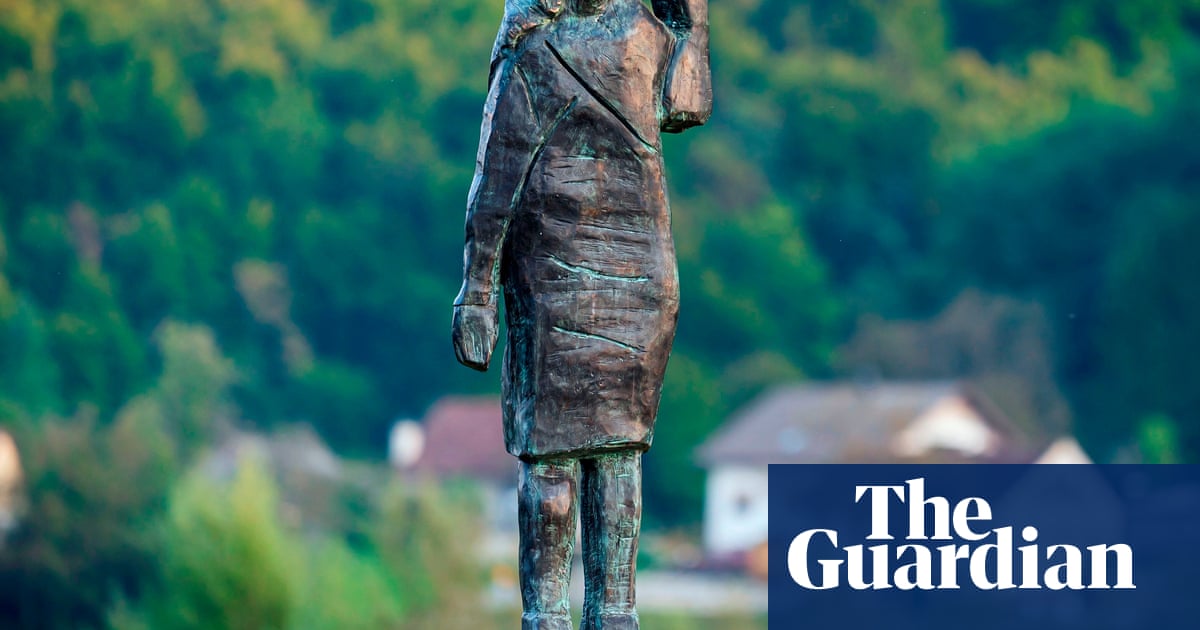 The life-sized bronze statue of the US first lady was unveiled near her hometown of Sevnica in 2020, towering over a field on a tree stump, after arson had destroyed the previous wooden one.